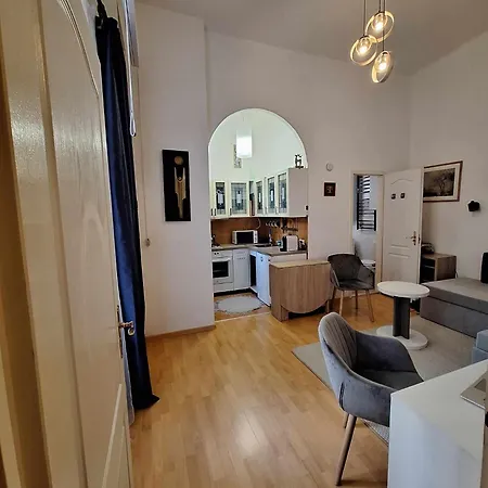 Among the self-catering amenities provided is a kitchenette with a toaster, a stove top, and kitchenware. The apartment is a mere 5 minutes on foot from Blaha Lujza tér underground station and nearly 20 minutes on foot from Nyugati railway station.